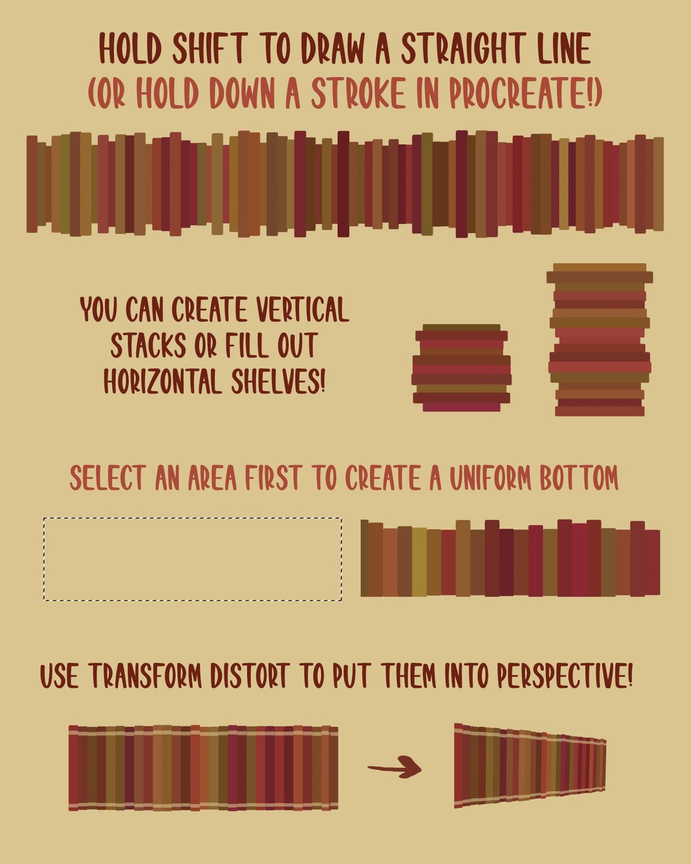 I created these brushes to speed up my process of painting books on bookshelves. I hope you enjoy them!